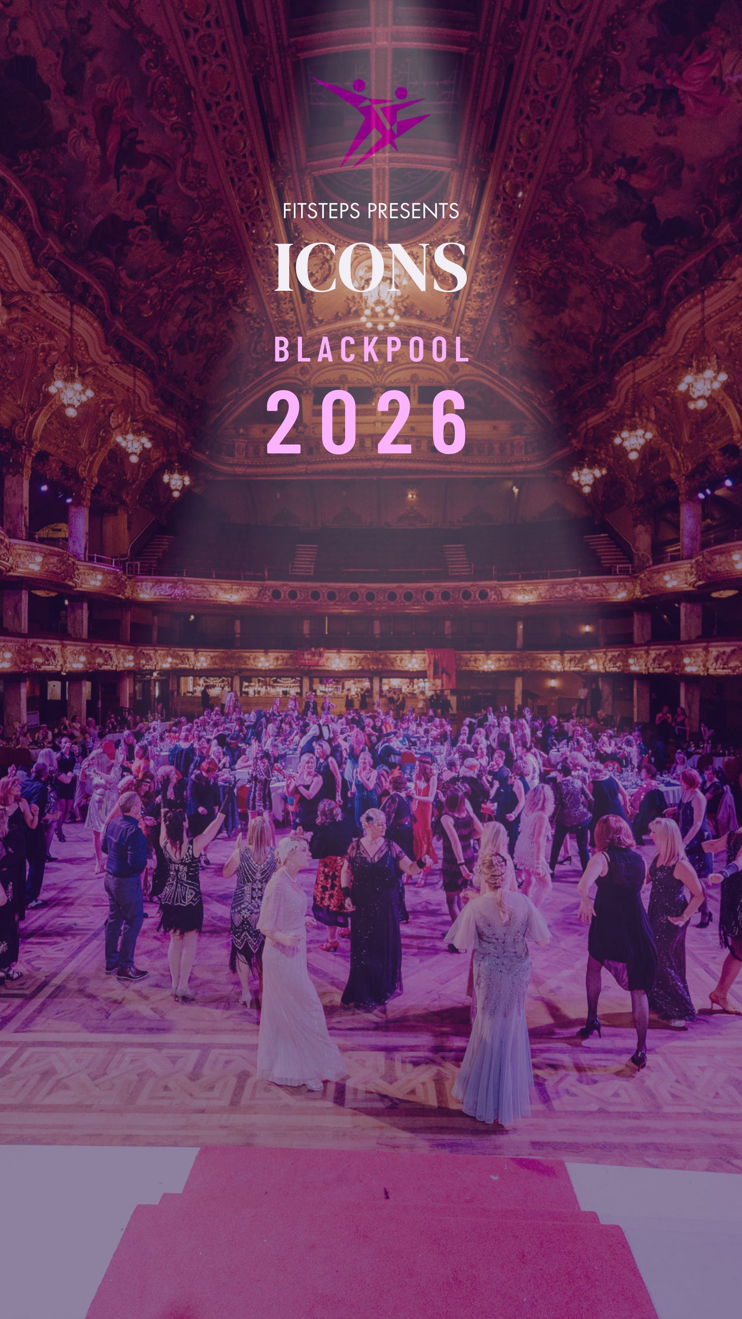 Get your ticket for the exclusive FitSteps ICONS Experience — a spectacular celebration of legendary music and dance at the iconic Blackpool Tower Ballroom. Dance through the decades with feel-good FitSteps classes inspired by disco divas, pop royalty, and rock legends, then glam up for an unforgettable evening of show-stopping performances and iconic moments reimagined. Join us on Saturday 28th November for a full day and night of music, movement, and pure celebration.